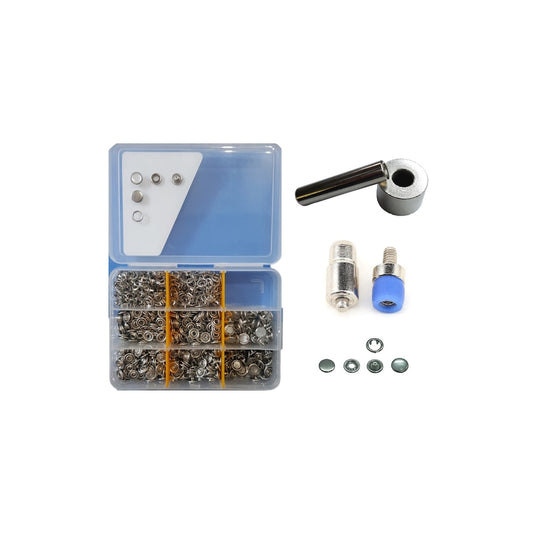 Tulumba Pres, 50 Takım 15mm Çıtçıt, No5 Kuşgözü Seti. Paslanmaz, Kutulu, Delme Ve Çakma Aparatları