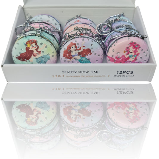 El Aynası - Anahtarlıklı Deniz Kızı Desenli Katlanır Makyaj Aynası - Cep, Çanta Aynası