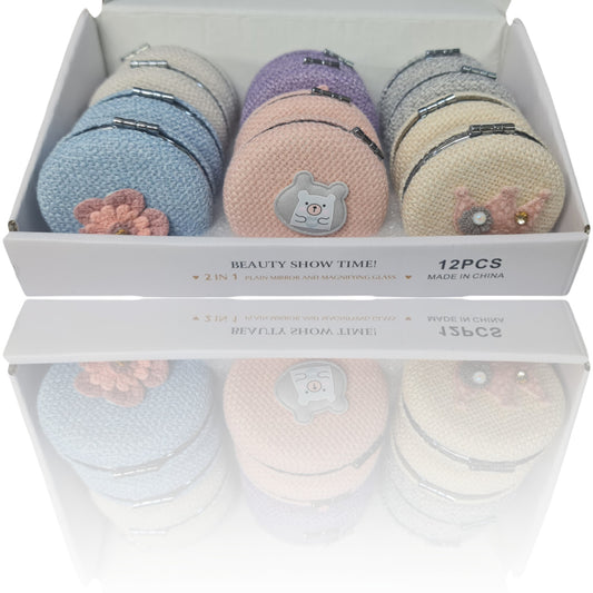 El Aynası - Örgülü Yuvarlak Katlanır Makyaj Aynası - Cep, Çanta Aynası