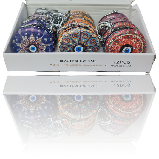El Aynası - Anahtarlıklı Otantik Desenli Katlanır Makyaj Aynası - Cep, Çanta Aynası