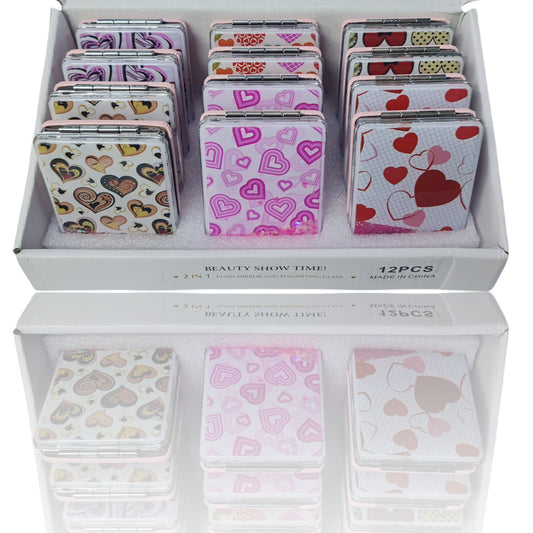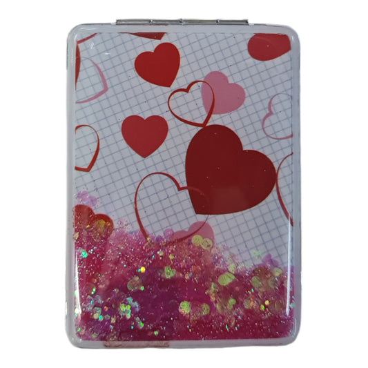 El Aynası - "Kalp Desenli Pırıltılı Katlanır Dikdörtgen Makyaj Aynası - Cep, Çanta Aynası