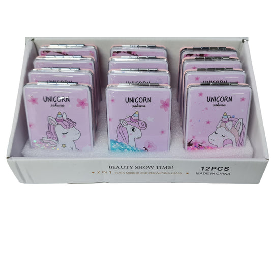 El Aynası - "Unicorn Sakura" Yazılı Katlanır Dikdörtgen Makyaj Aynası - Cep, Çanta Aynası