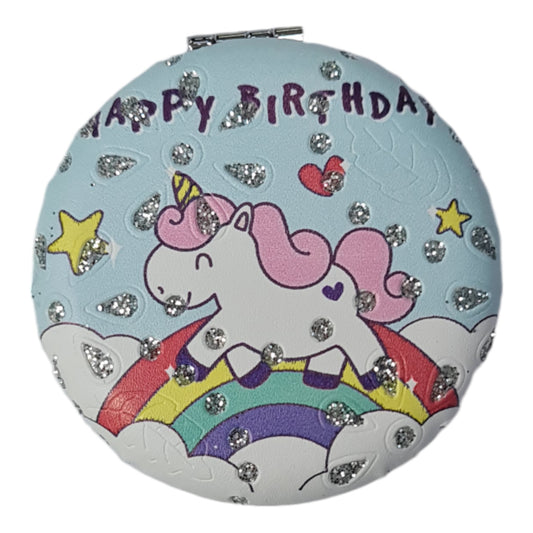 El Aynası - "Unicorn's real" Yazılı Katlanır Yuvarlak Makyaj Aynası - Cep, Çanta Aynası