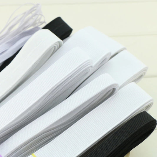 2.5 cm Yassı Lastik (10 metrelik toplar halinde). Siyah veya beyaz renklerde