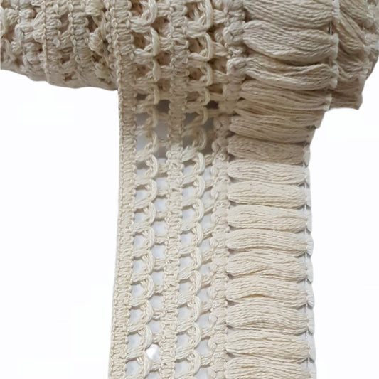 5 cm wide patterned cotton tassel fringe. ( 5 meters in ball )
