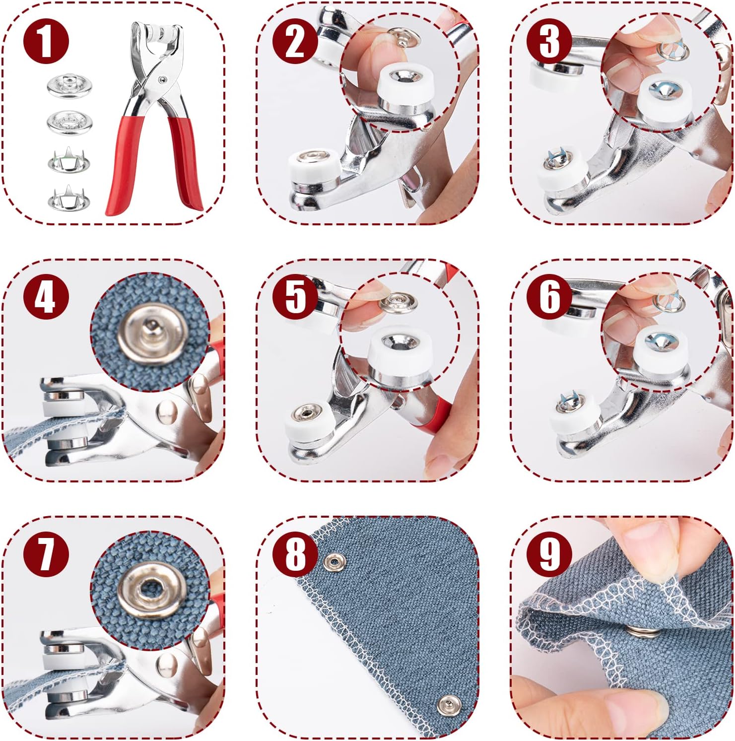 Kullanımı Kolaydır: Çekice gerek yoktur. Önce delik açmaya gerek yoktur. Çıtçıtları istediğiniz kumaşın üzerine taktıktan sonra çıtçıtlar düşmeyecektir çünkü beş keskin tırnak çıtçıtın sabit kalmasını sağlar.