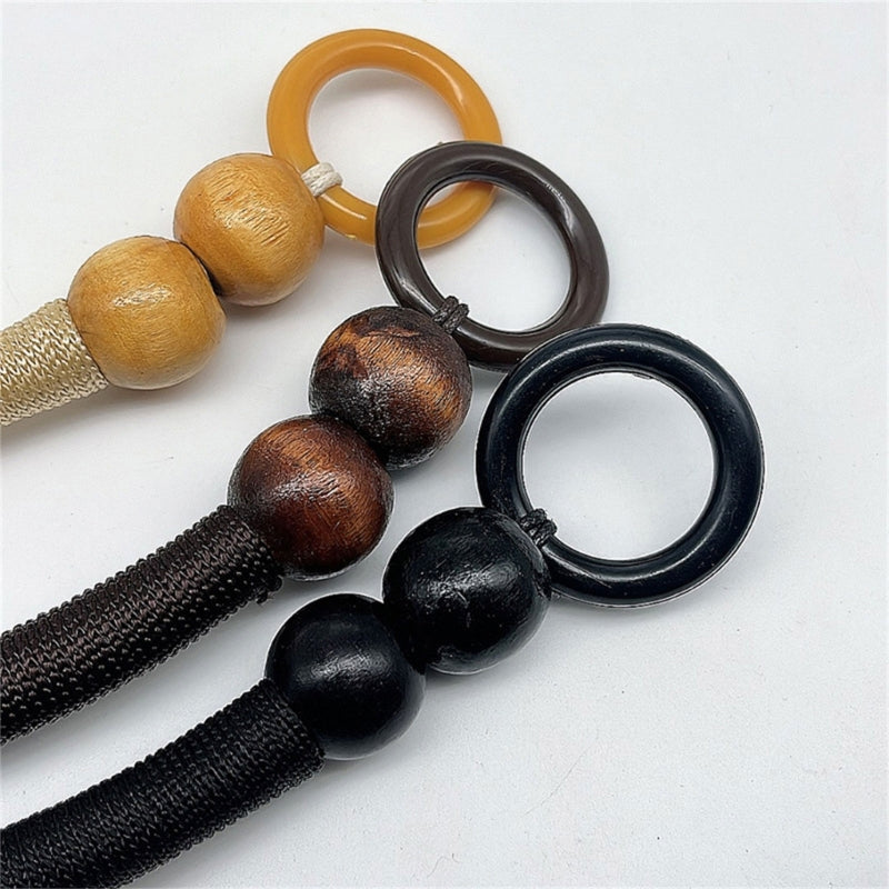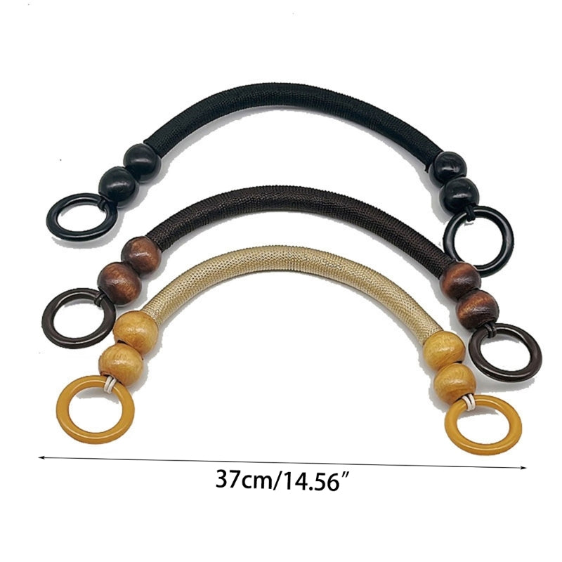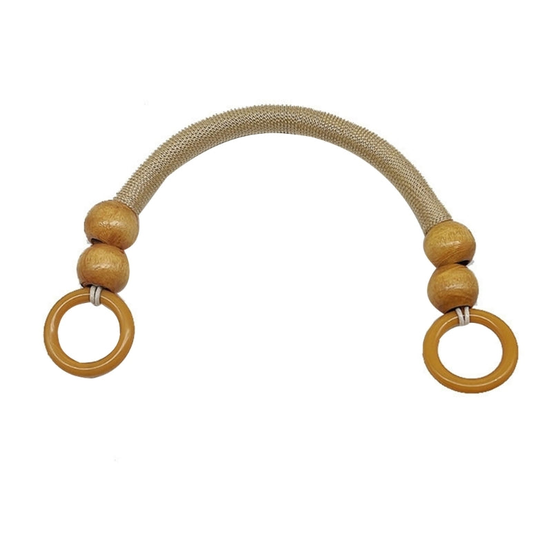 Ahşap boncuklarla hazırlanmış rahat ve sağlam bir tutuş için naylon kordondan imal edilmiş zarif çanta sapı.