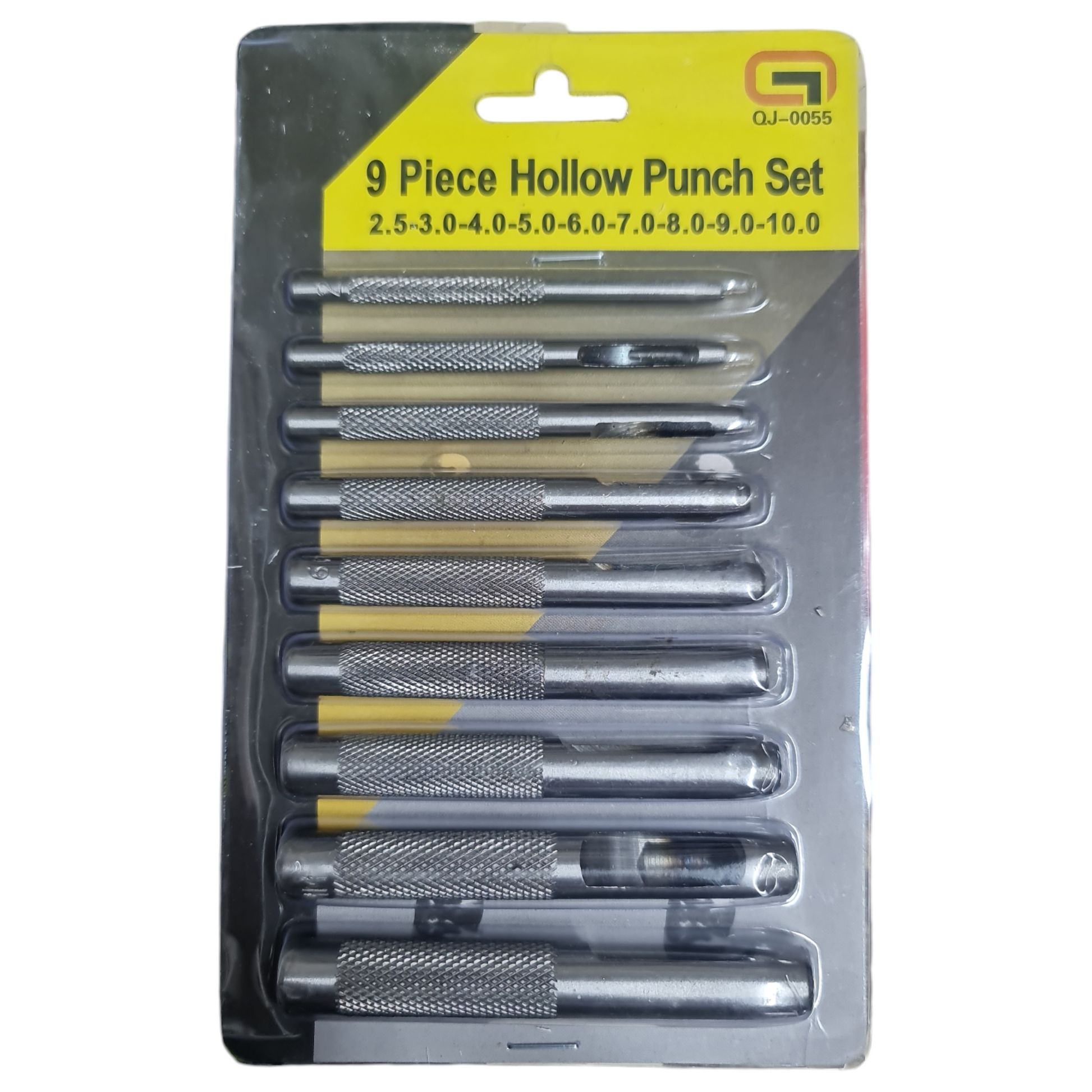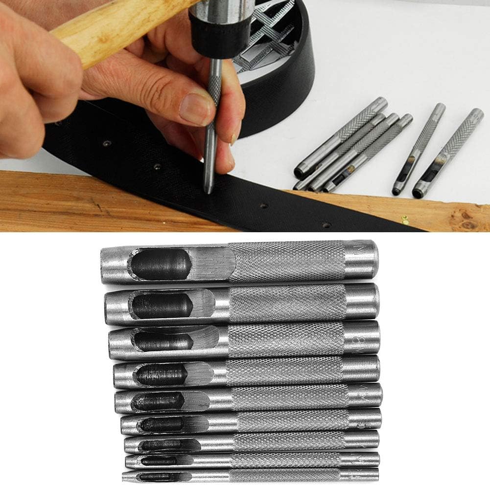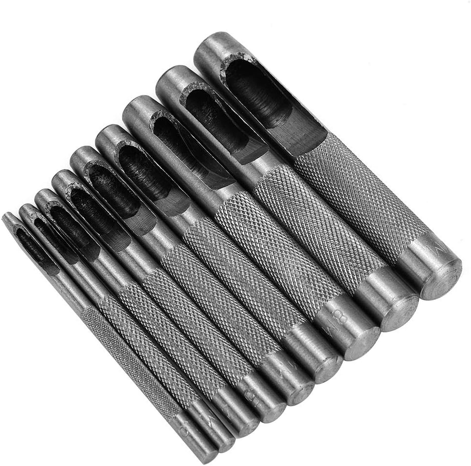 - Set: Bu 9 parçalı zımba seti, projelerinizde farklı delik boyutları için seçenekler sunan 2,5 mm ila 10 mm arasında değişen delik boyutlarını içerir.