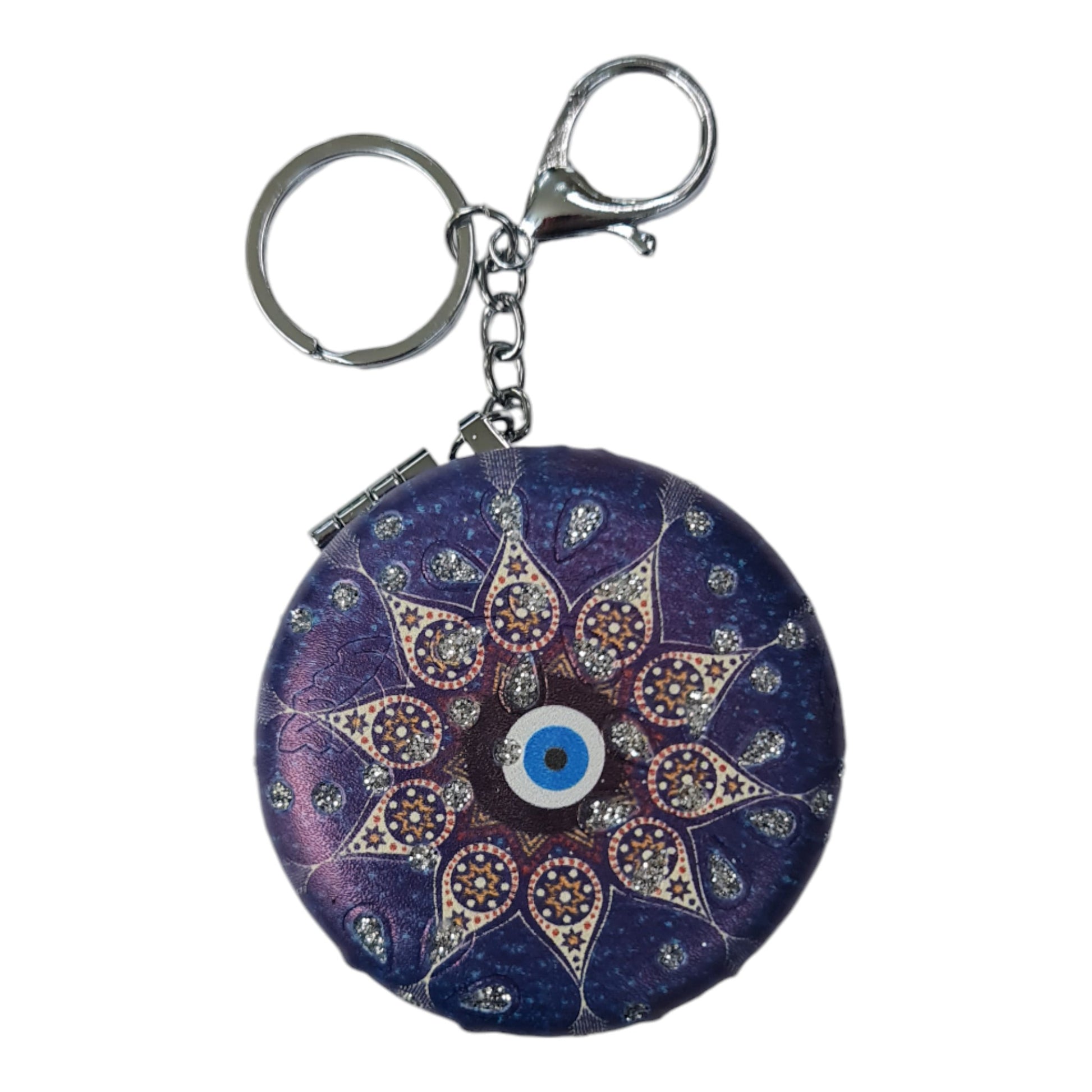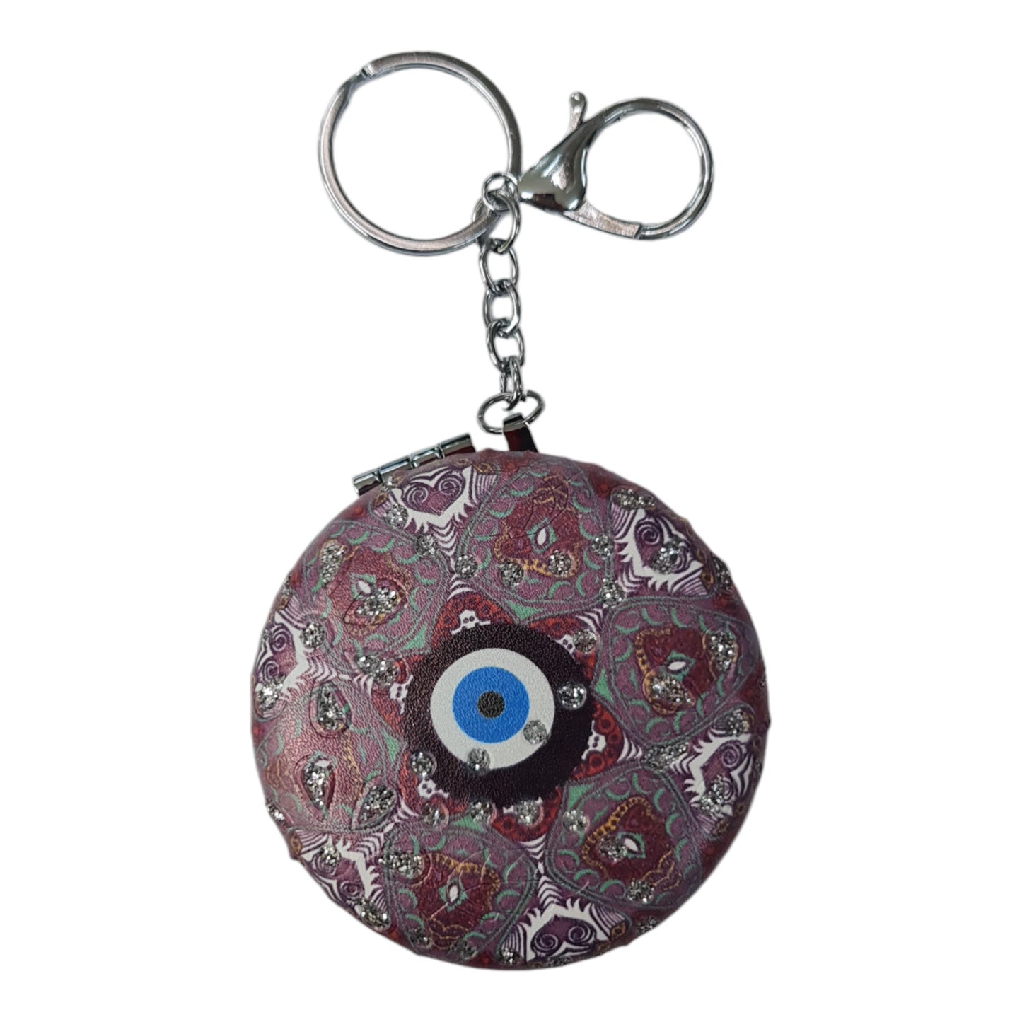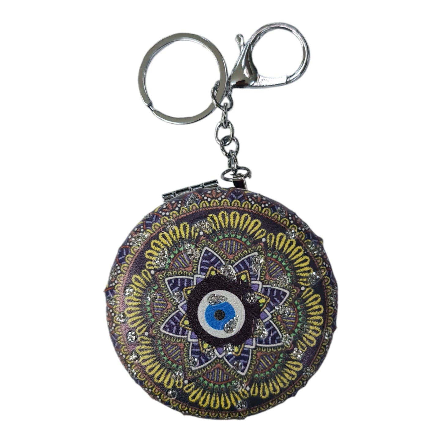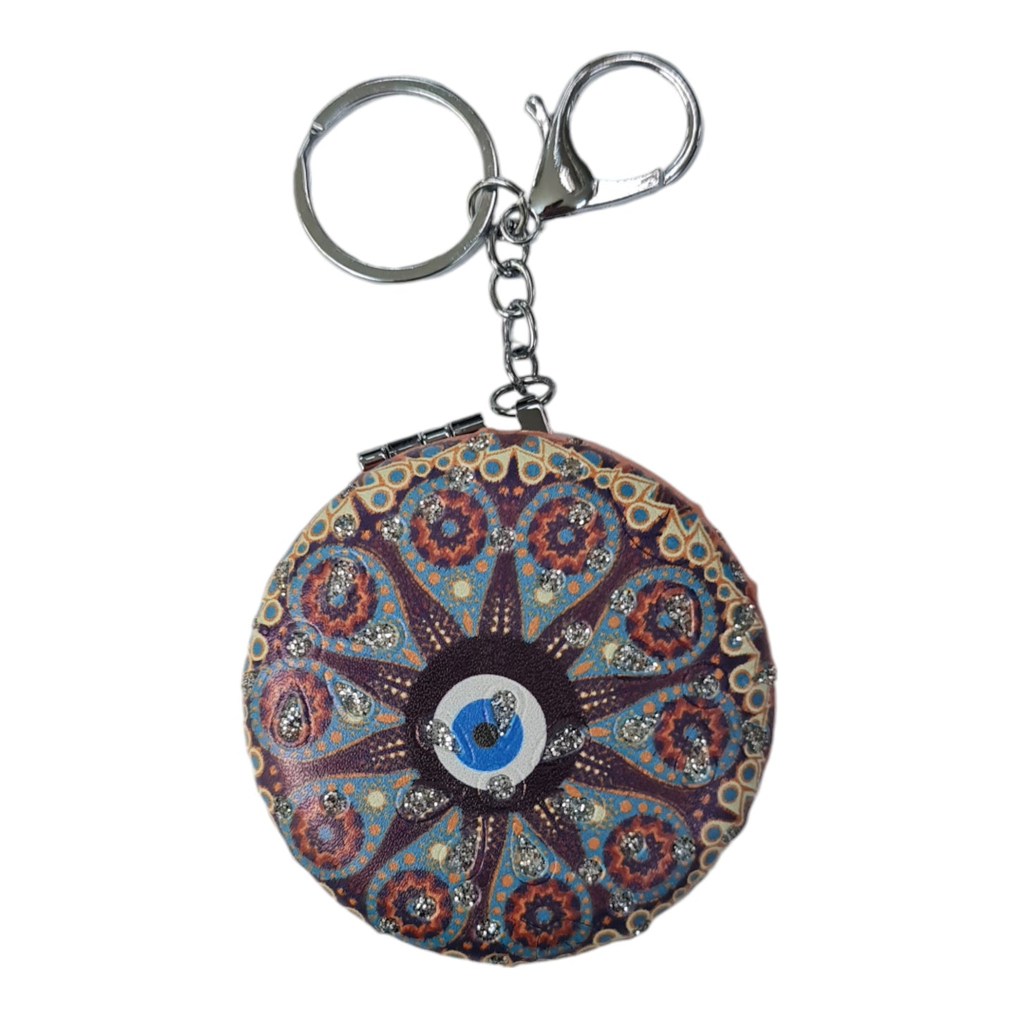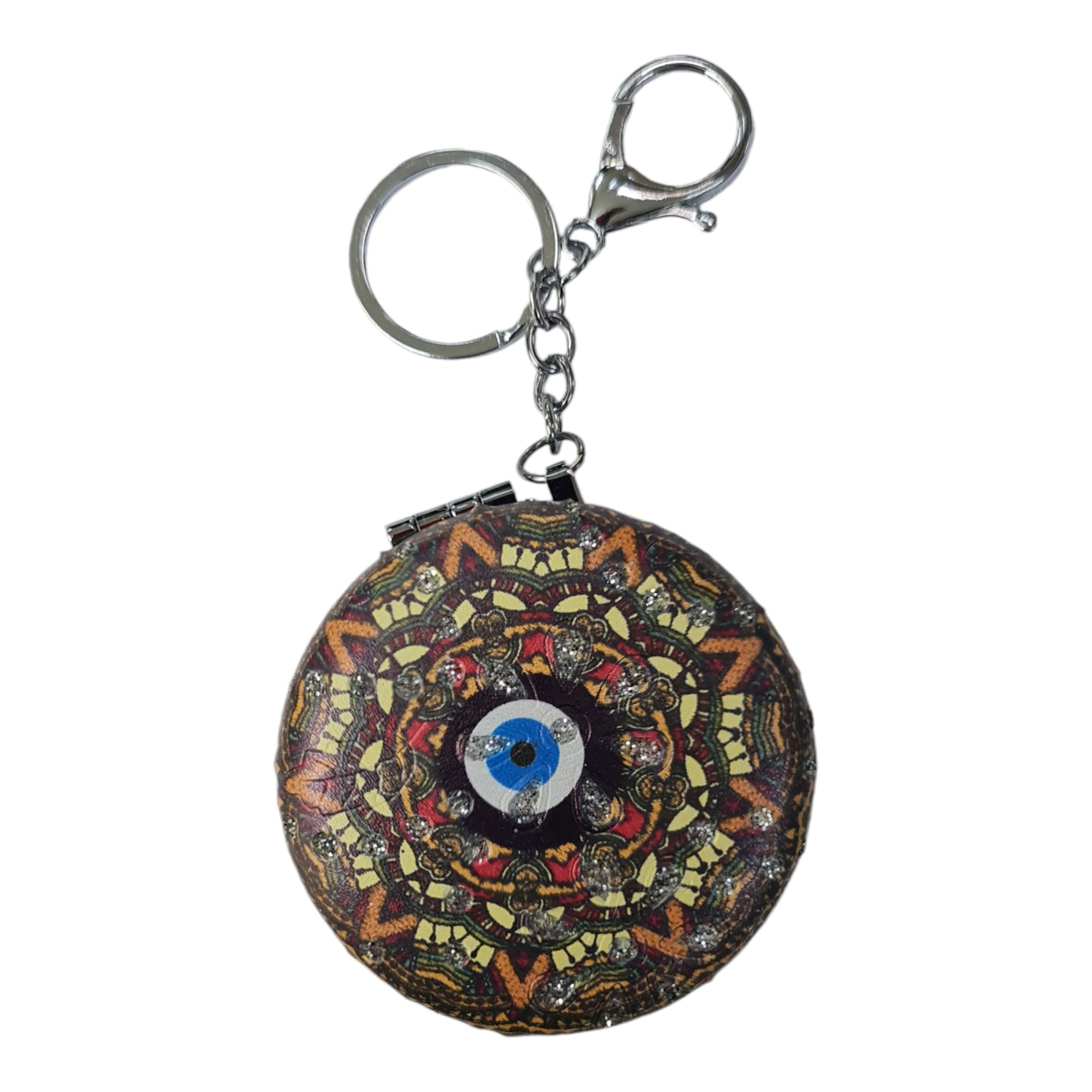 El Aynası - Anahtarlıklı Otantik Desenli Katlanır Makyaj Aynası - Cep, Çanta Aynası