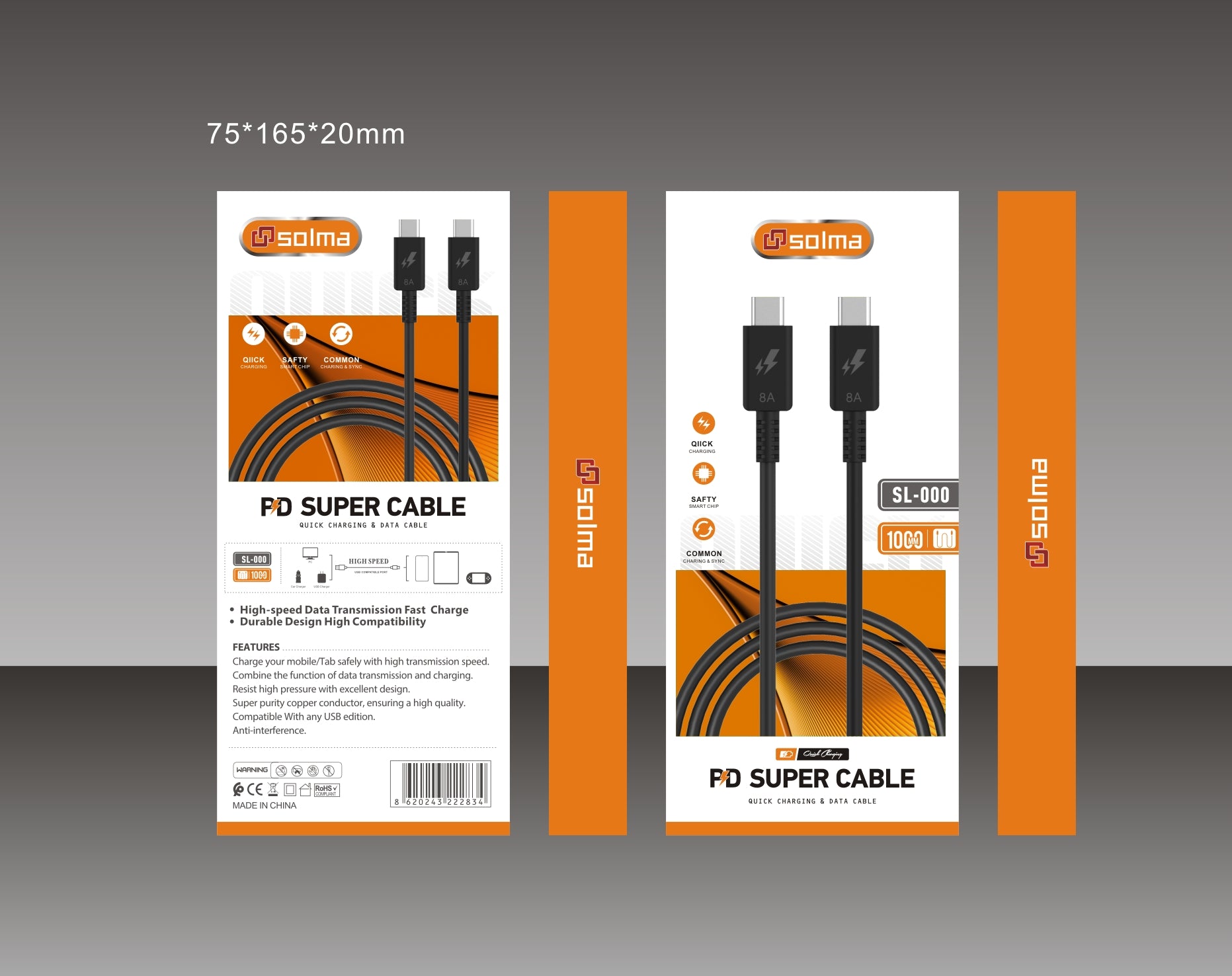 SL-C232 Hızlı Şarj Kablosu - Tip C 'den Tip C'ye (Type C- Type C) 1mt - 68W