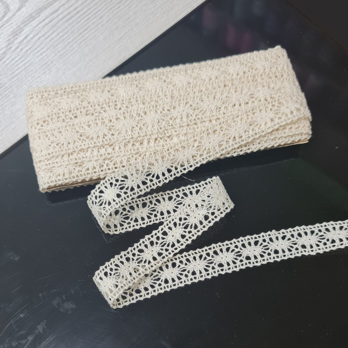 Top halinde 10 metrelik pamuk (kopanaki) dantel. Ürün eni 20mm'dir. -2cm-