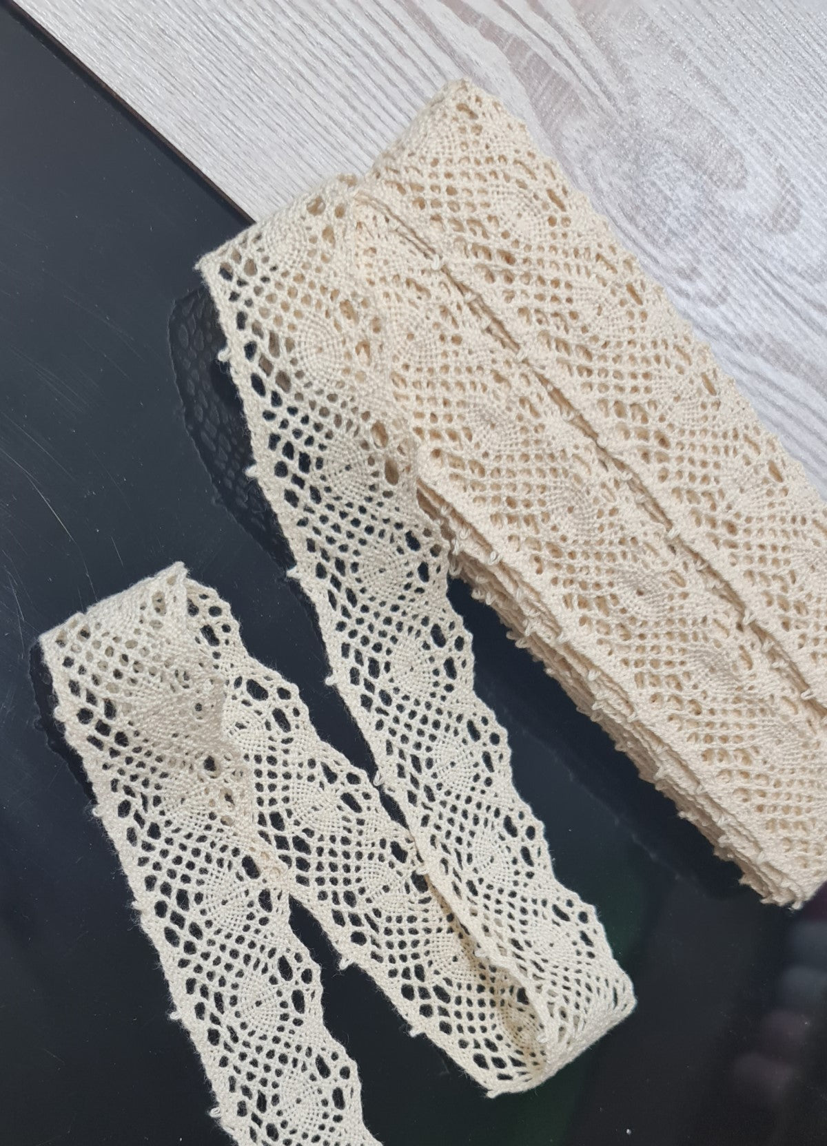Top halinde 10 metrelik pamuk (kopanaki) dantel. Ürün eni 35mm'dir. -3.5cm-