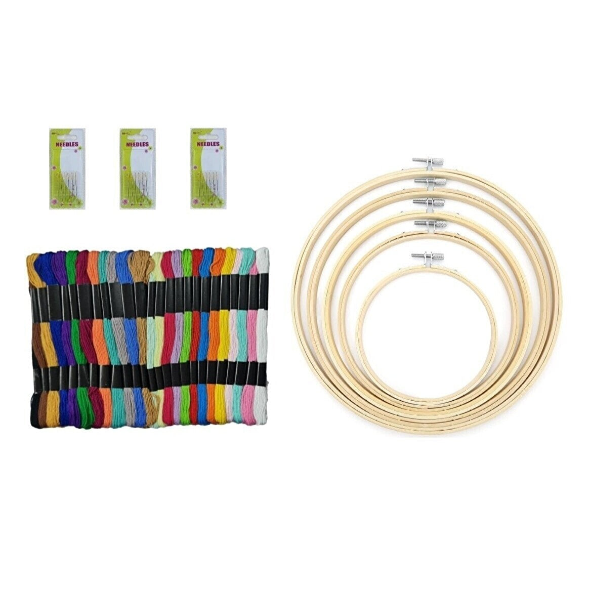 Muline Iplik Seti 100 Adet Çile, 18 adet Etamin İğnesi, 5 Adet Bambu Kasnak