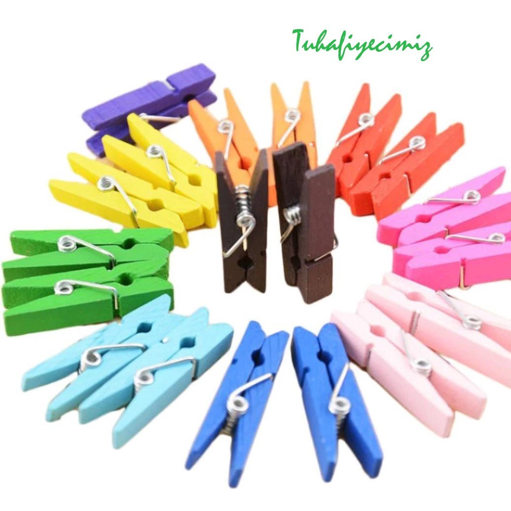 Dekoratif Renkli Mini Ahşap Mandal 2.5 cm (50, 100, 250 veya 1000 adet)