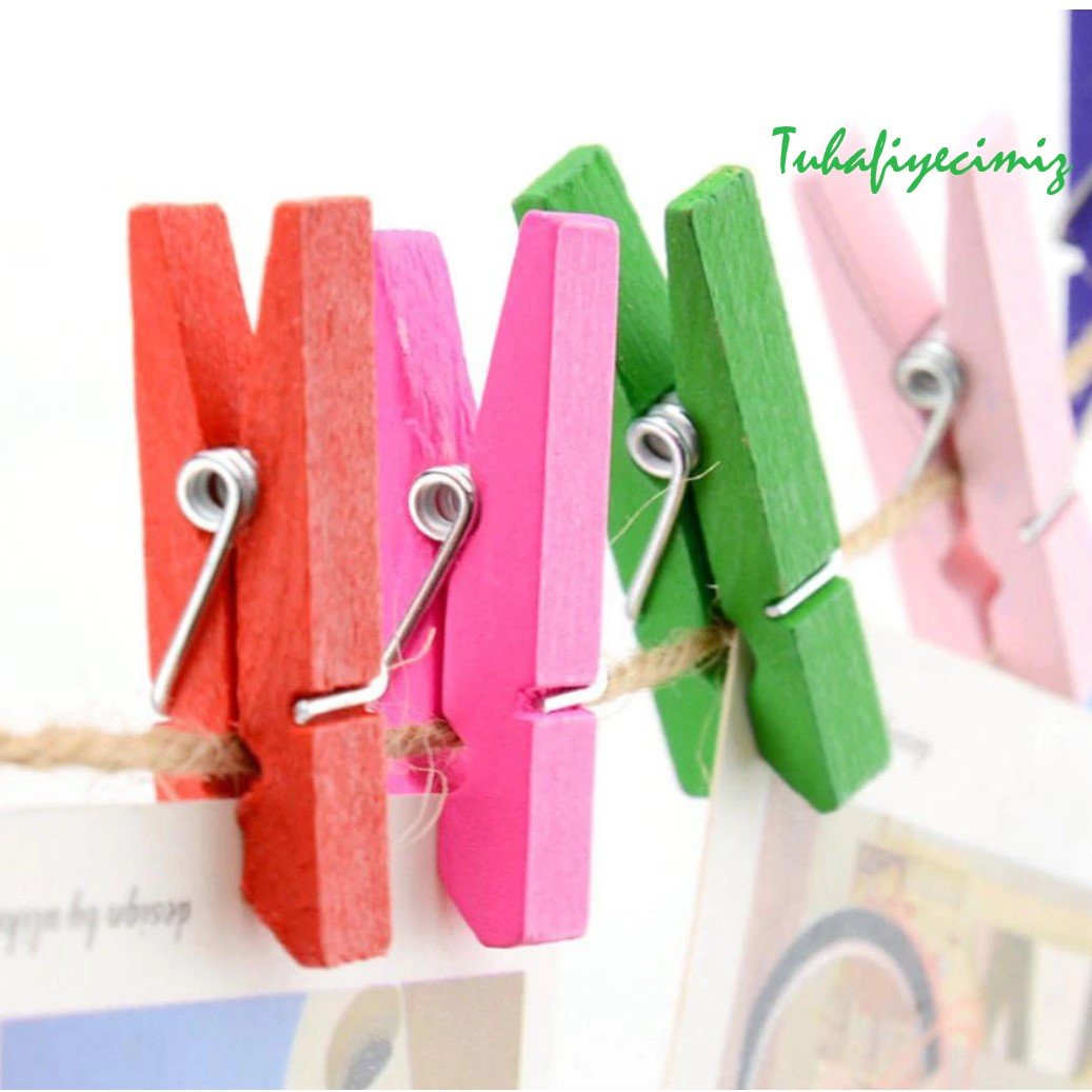 Renkli Mini Ahşap Mandallarla fotoğraflarınızı, notlarınızı, resimlerinizi veya ufak nesneleri asarak değişik dekorasyonlar yapabilirsiniz.