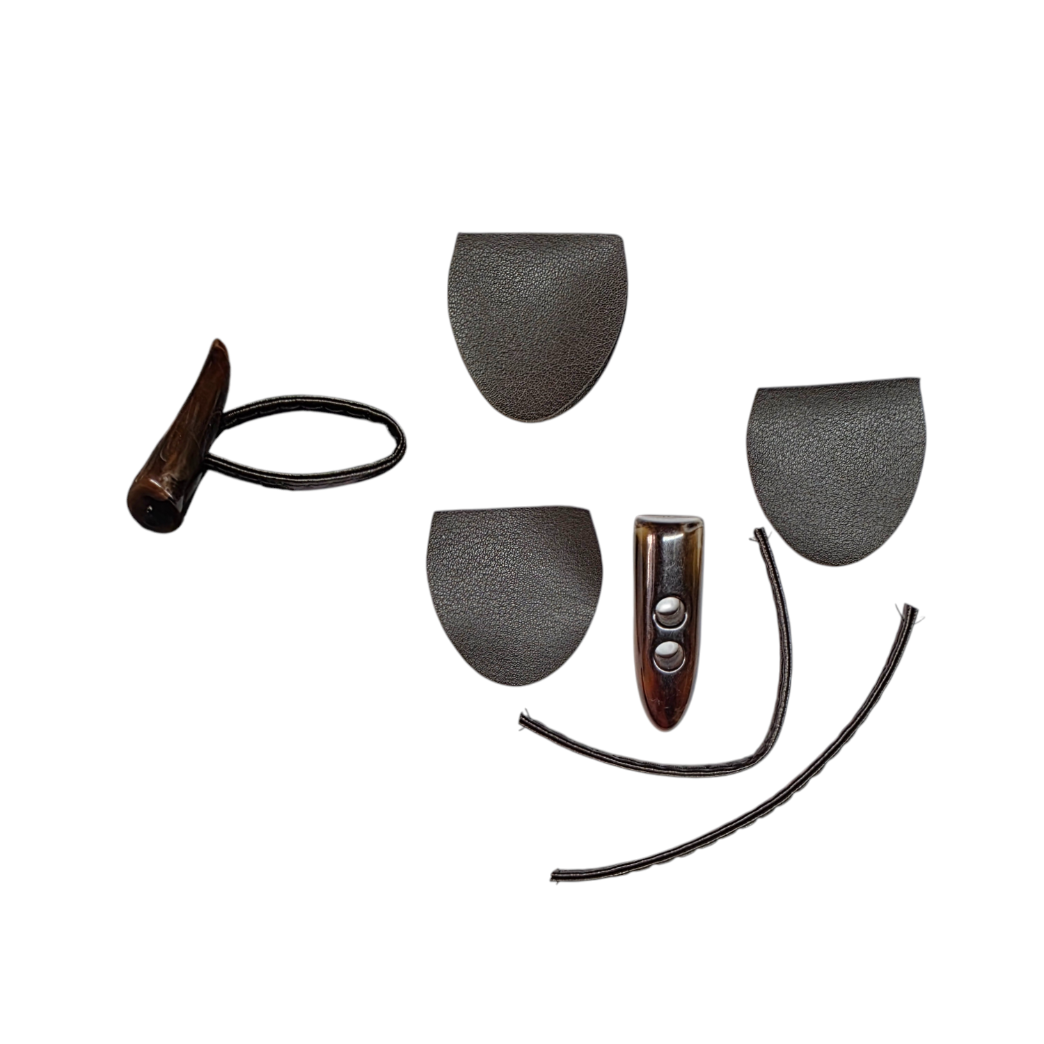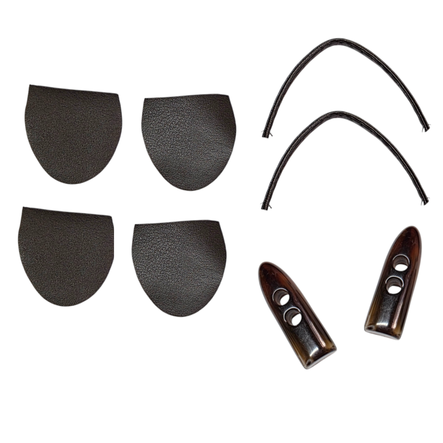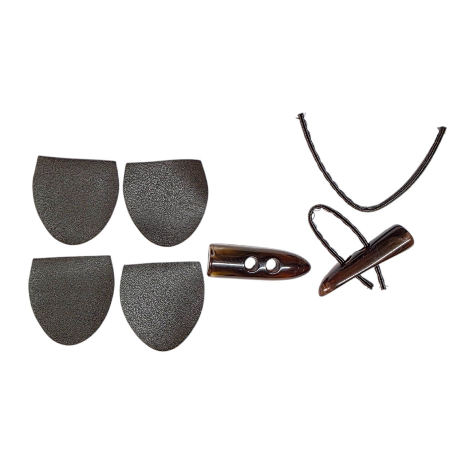 - 1 adet çoban düğme seti. (1 adet kemik çoban düğme + 2 birit + 2 birit kapatıcı deri parça.)