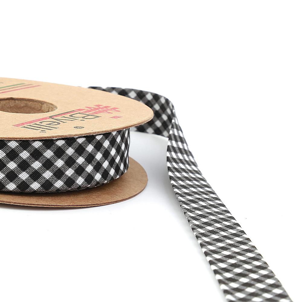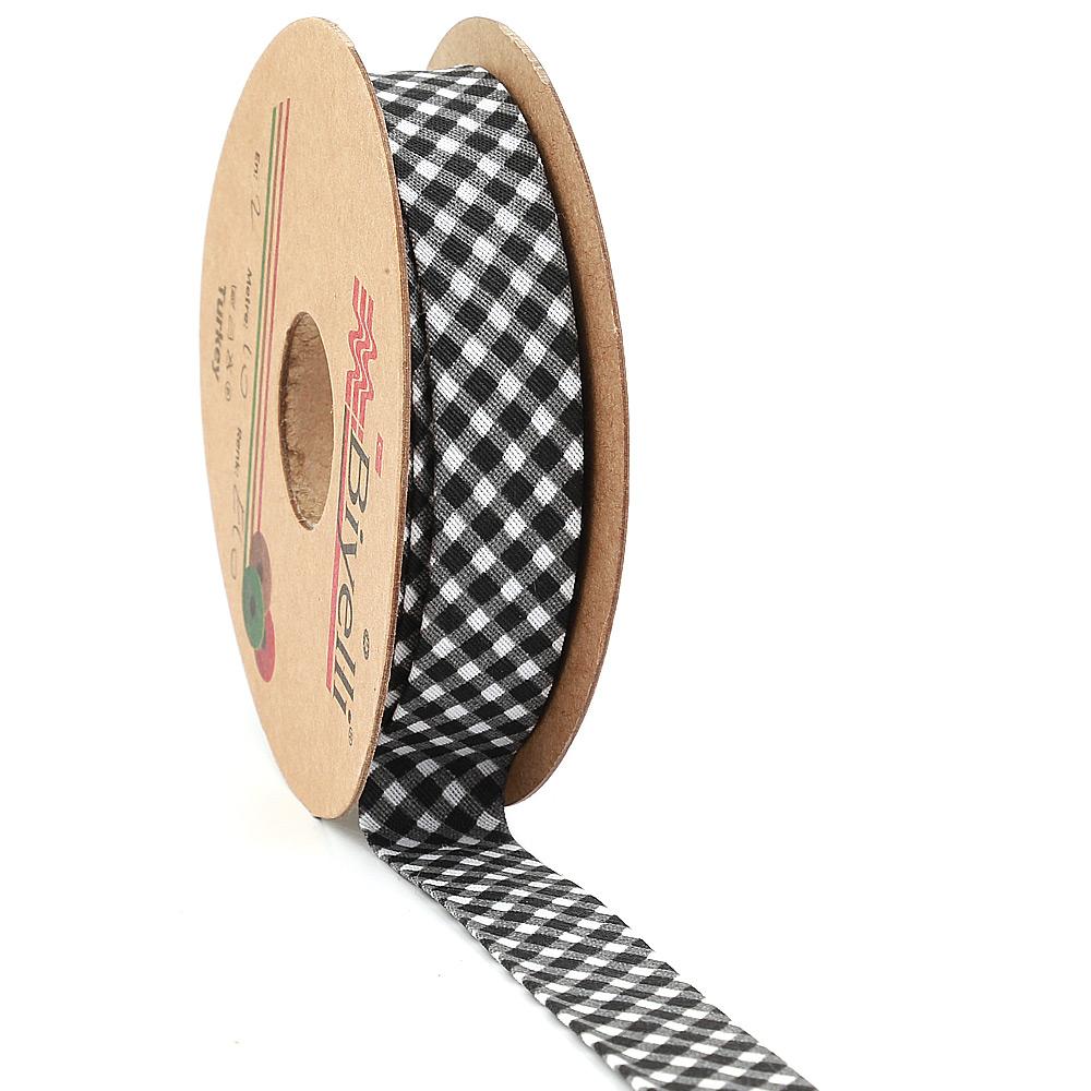Siyah Ekose Pamuk (Koton) Biye 2cm eninde 25mt (E10)