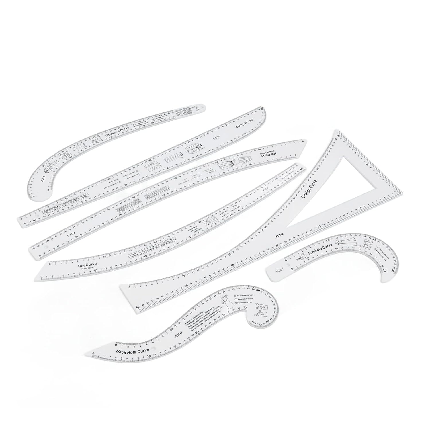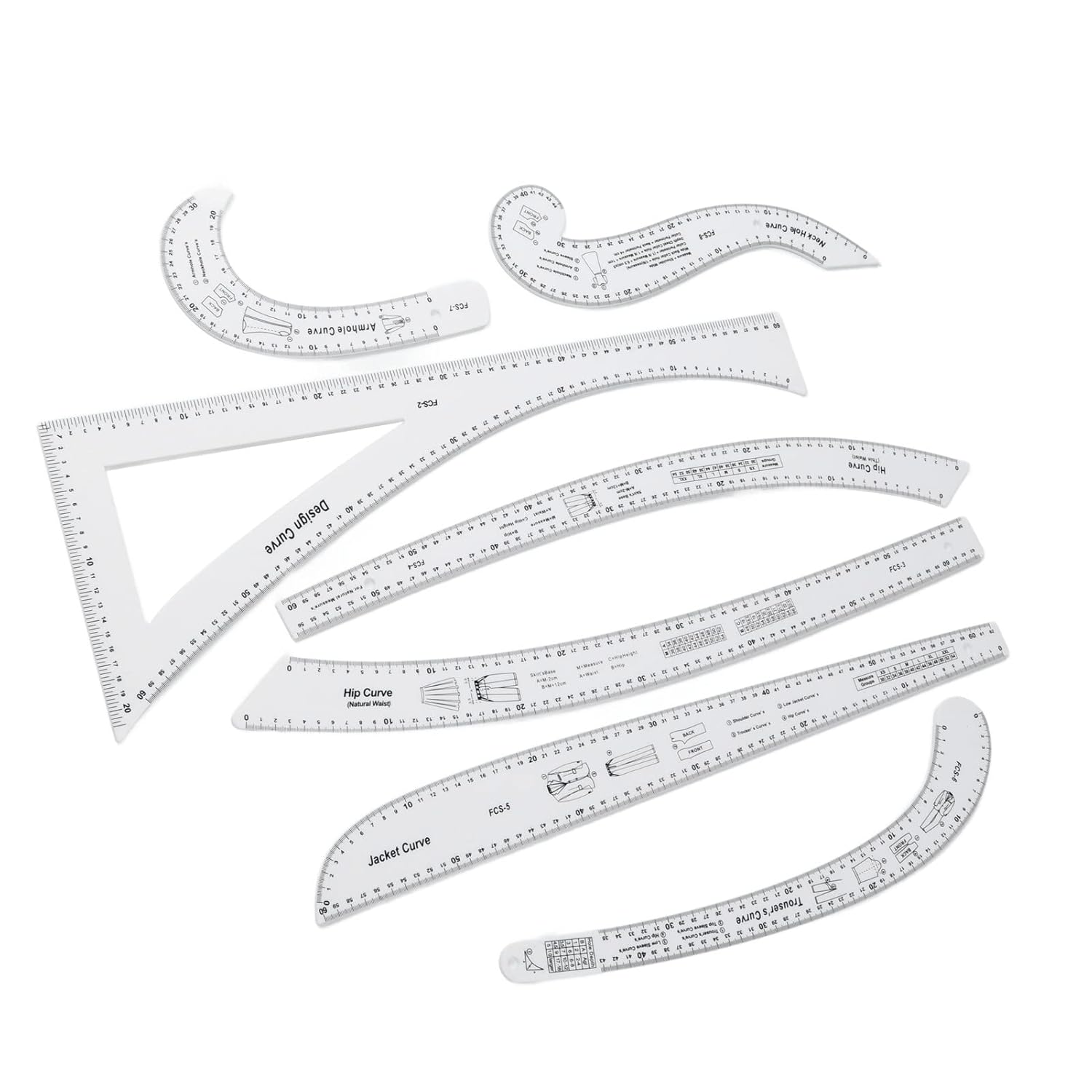 Dikiş malzemeleri, terzi cetveli, beyaz cetvel seti, desen çizim araçları ve moda tasarım ekipmanları arayanlar için ideal bir seçim! Bu 7 parçalı cetvel seti, her biri farklı işlevlere sahip bağımsız araçlardan oluşur. Fransız eğrisi, kol eğrisi, kalça eğrisi, düz kenar cetveli gibi çeşitler sayesinde ölçüm ve çizim süreçlerinizde maksimum verim sağlar.