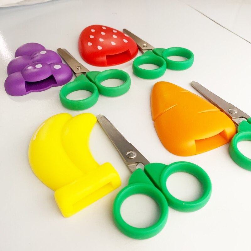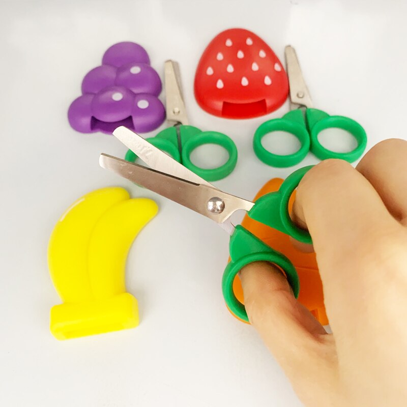 Dolabınıza asabilirsiniz. Kağıt kesiminde, kırtasiye işlerinde çocuklarınızın severek kullanacağı meyve desenli makas.