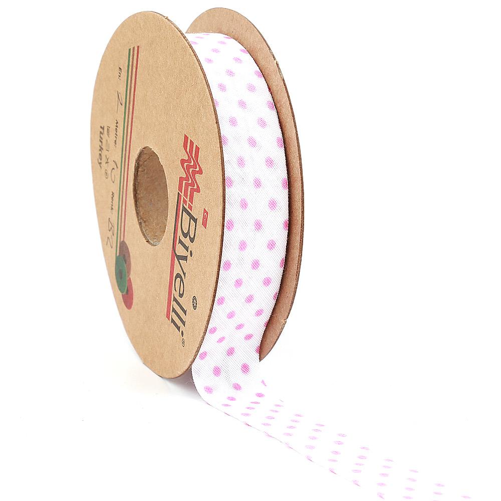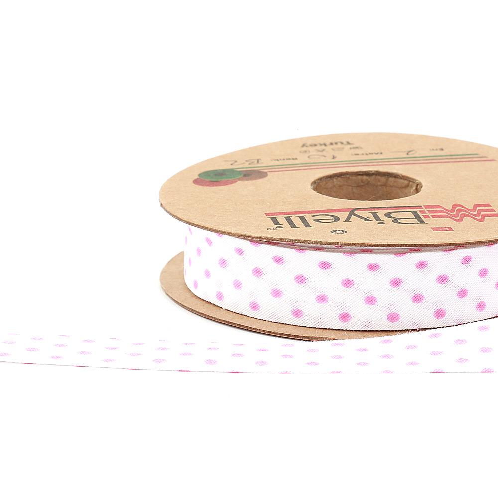 - 20mm eninde katlanmış beyaz üzerine puanlı pamuklu (koton) biye.