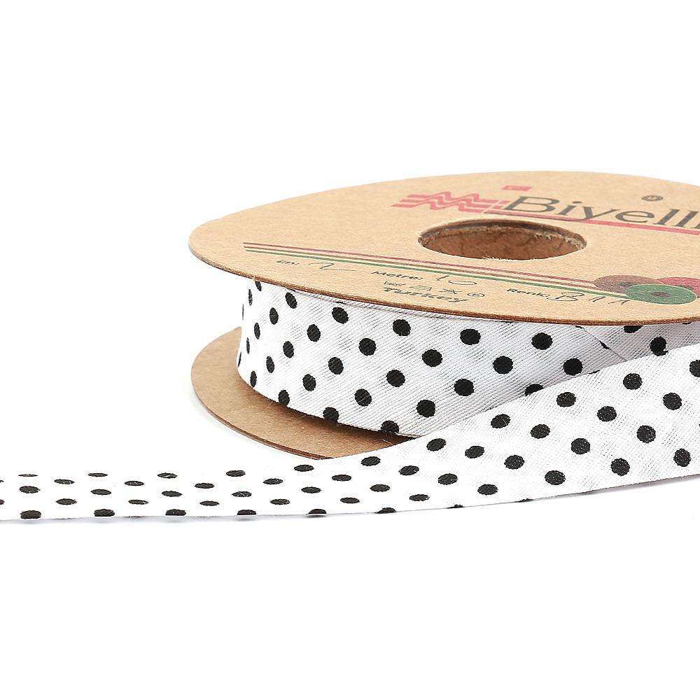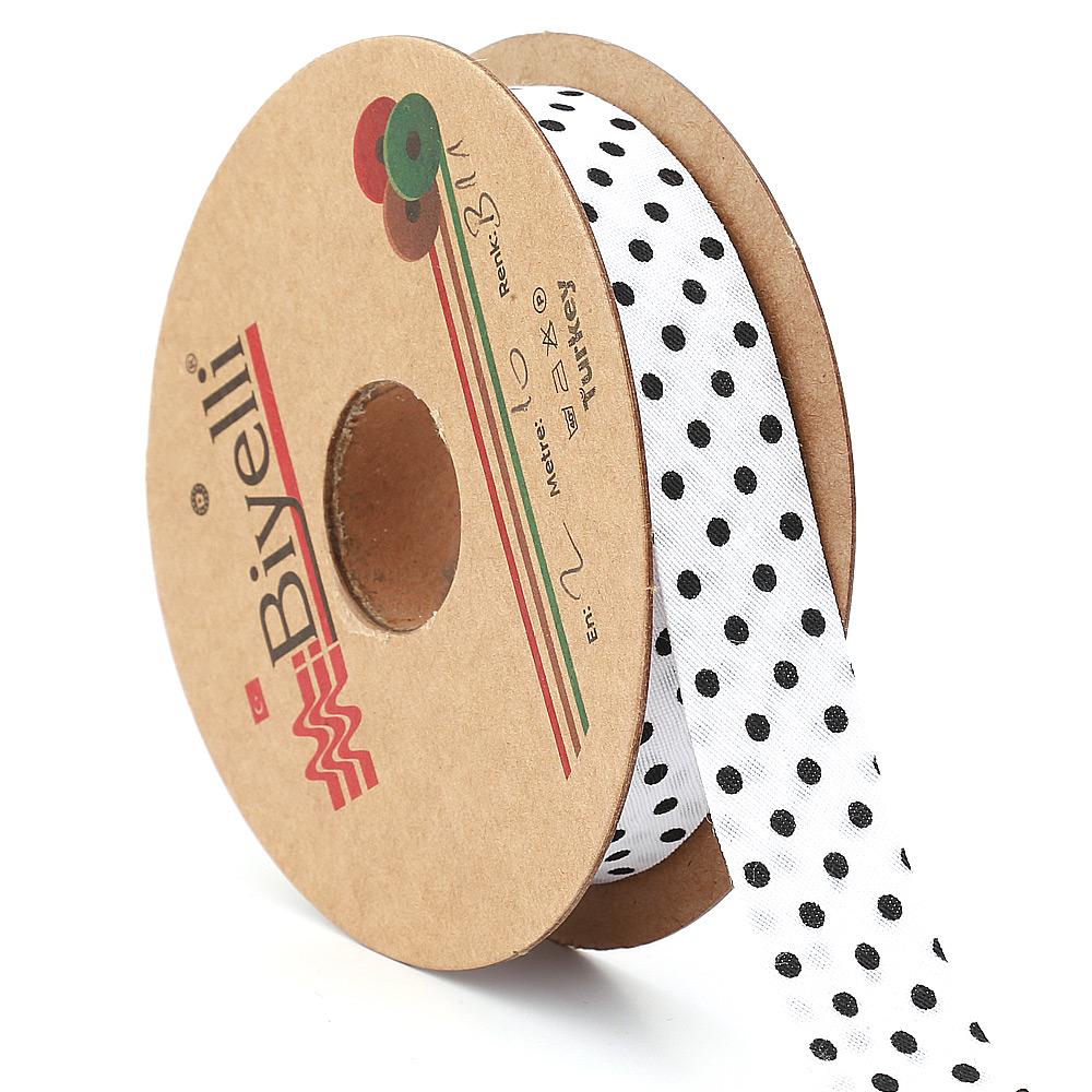 - 20mm eninde katlanmış beyaz üzerine puanlı pamuklu (koton) biye.